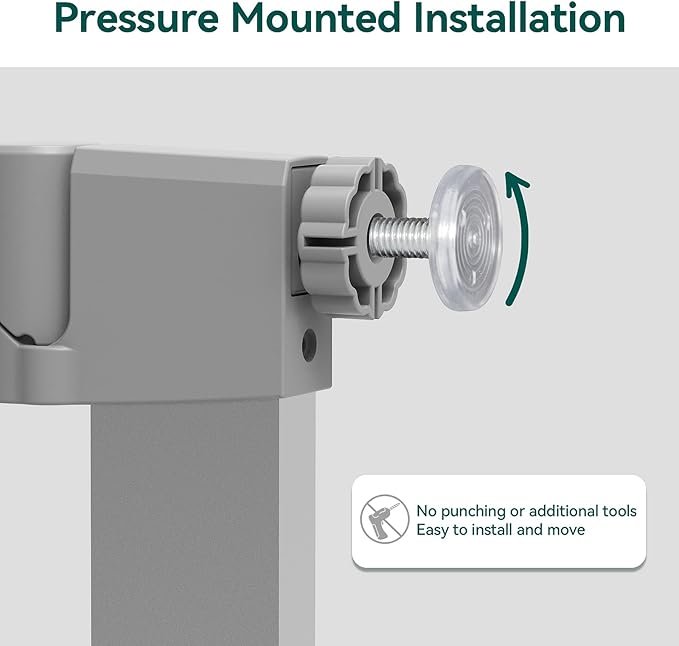 - EASY TO SET UP: Simple and quick pressure installation, not require additional tools and no holes in the wall. It is equipped with an auto-close feature that gently closes the door and a stay-open feature that keeps it open. The baby gate can be opened easily with one-hand operation even while holding a baby.