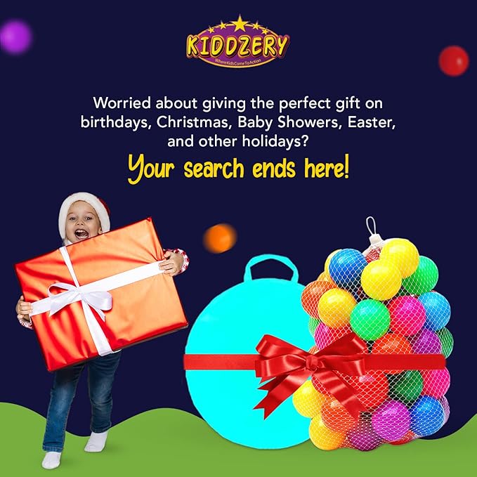 - Bonus 50 Vibrant Ball Pit Balls: Includes 50 colorful, crush-proof, BPA-free plastic balls (2.2" diameter) in 7 bright colors—perfect for use in ball pits, play tents, or bounce houses for enhanced fun.