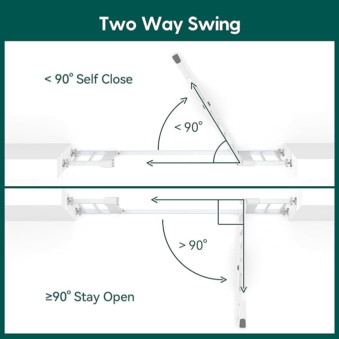 - EASY TO SET UP: Simple and quick pressure installation, not require additional tools and no holes in the wall. It is equipped with an auto-close feature that gently closes the door and a stay-open feature that keeps it open. The baby gate can be opened easily with one-hand operation even while holding a baby.