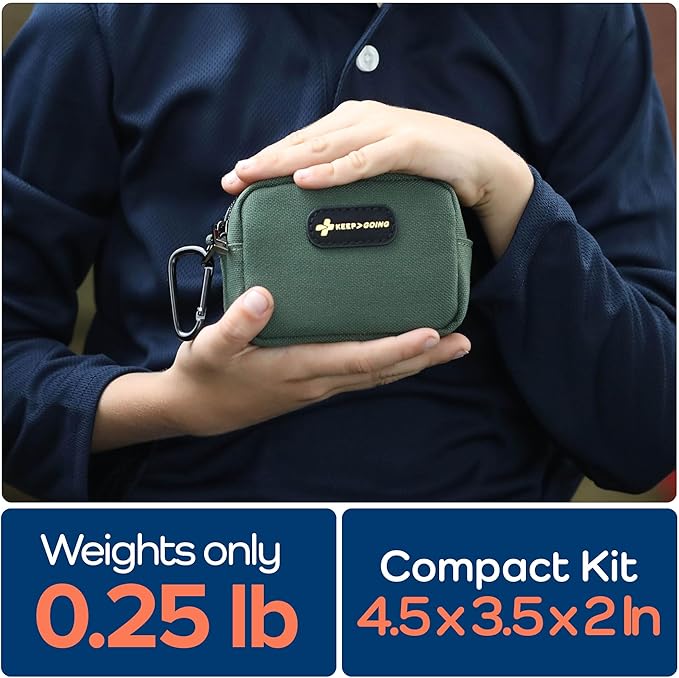 KeepGoing Small Travel First Aid Kit Kids – 60 Pc. Mini First Aid Kit for Purse, Diaper Bag, & Backpack with Latex-Free Bandages – 4 Oz., & 4.5 x 3.5 x 2 in, TSA-Approved