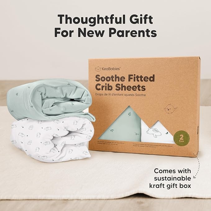 - 2-Pack Baby Crib Sheets - KeaBabies Soothe Fitted Crib Sheets for boys and girls; fit standard crib mattresses (52"x28" with height 3" to 8") perfectly, offering your baby a safe and restful sleep.