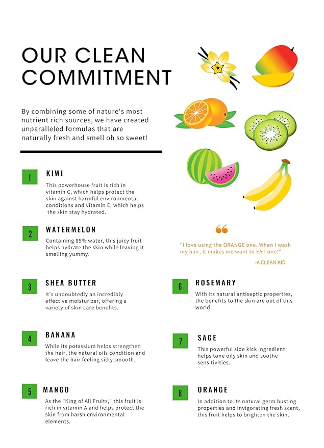 Clean Kids Naturally Tropical Shampoo- EWG Verified, All-Natural, Coconut-free, Gluten-free, Vegan, and Cruelty-free, Paraben-Free (2 Bottles, Orange Burst)