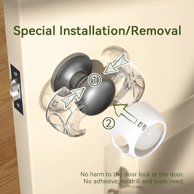 - Special Installation/Removal---Special installation design makes adults easy to install or remove with only hands,no harm to the door lock or the door.No Adhesive, no drill and tools need.