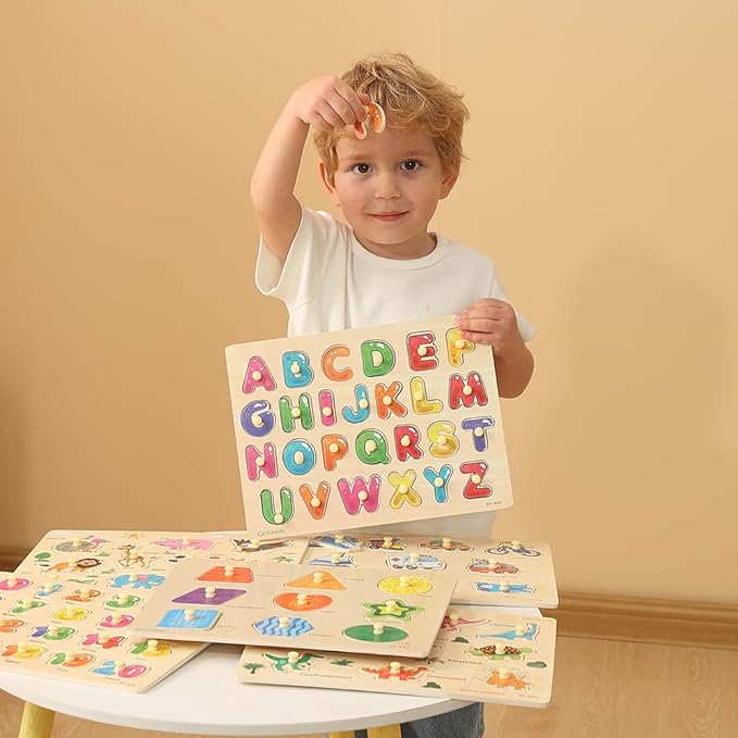 - [NATURAL RAW MATERIAL]: This wooden peg puzzle set comes from worldโs largest wooden toy production city, which uses the best export standard wood. All parts have passed ASTM test to ensure safety and non-toxicity, and will not cause any impact on childrenโs health.