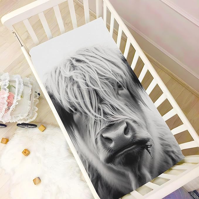 Highland Cow Crib Sheets for Boys and Girls, Fitted Baby Crib Sheets Soft and Breathable Mini Crib Sheets 39 X 27 Inches