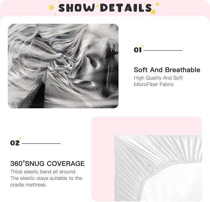 - Excellent Quality -- The fabrics of these crib sheets are carefully selected to be soft, comfortable and breathable, skin-friendly. Made of 95% polyester + 5% spandex, these crib sheets are fade resistant, machine washable and easy to care for.