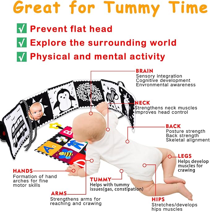 - Perfect Tummy Time Toys: Our 3 month old toys for babies help babies practice lifting their heads, exercise their arms and legs and neck muscles, prevent flat heads and give them a better head shape, perfect baby toys 0-6 months. Very suitable as tummy time mat. Awesome tummy time toys. Perfect infant toys 0-3 months.