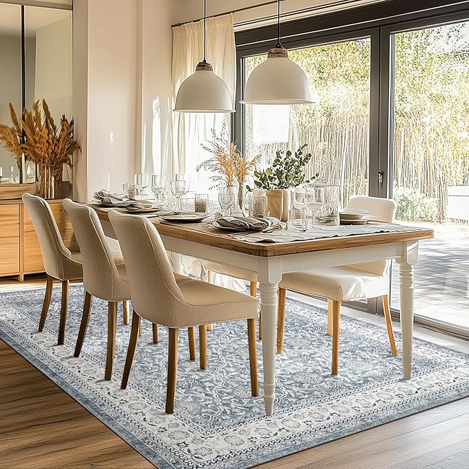 jinchan Floral 6x9 Area Rugs for Living Room - Machine Washable Vintage Distressed Boho Design Throw Rug Stain Resistant Carpet Low-Pile Thin Non-Slip for Bedroom Dining Room Nursery (6‘x9',Grey)