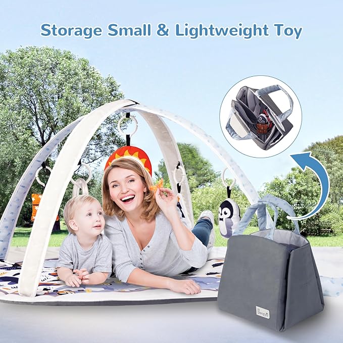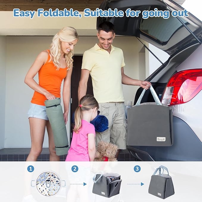 - 【Exclusive Foldable Design】: Li'l Pengyu baby play mat with exclusive foldable design, it's easy transforms into a handy bag for storing small toys. It's the perfect companion for camping and everyday play. Practicality meets convenience!