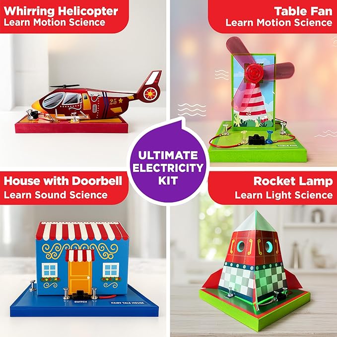 - ✅MOST COMPREHENSIVE SCIENCE KITS: With two distinct kits in one bundle, children can explore a broad spectrum of scientific concepts. From chemistry science to electricity science, this gift set covers it all, making it an excellent choice for both beginners and budding scientists.'Ultimate Science Kit' contains over 120 amazing science experiments and 'Electricity Kit' has 8 exciting projects.