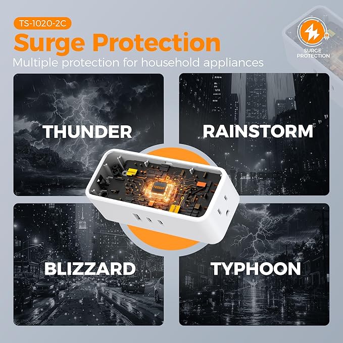 - Surge Protector Outlet: This extension cord surge protector with 900J surge protection can protect your expensive electrical appliances from damage by lighting, surges and spikes