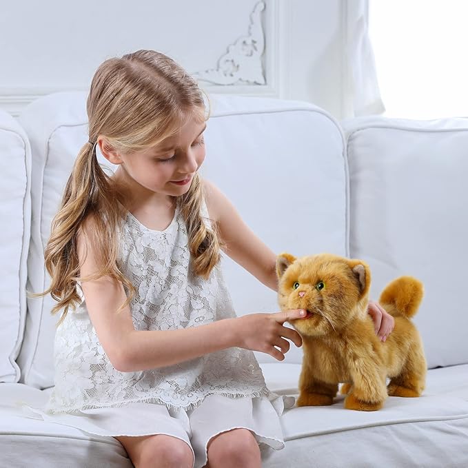 Electronic Walking Orange Cats, Realistic Interactive Puppy Pet Toy Cat, Walking, Barking,Wagging Tail & Talking,Present Pet Gifts for 3+ Year Boys Girls
