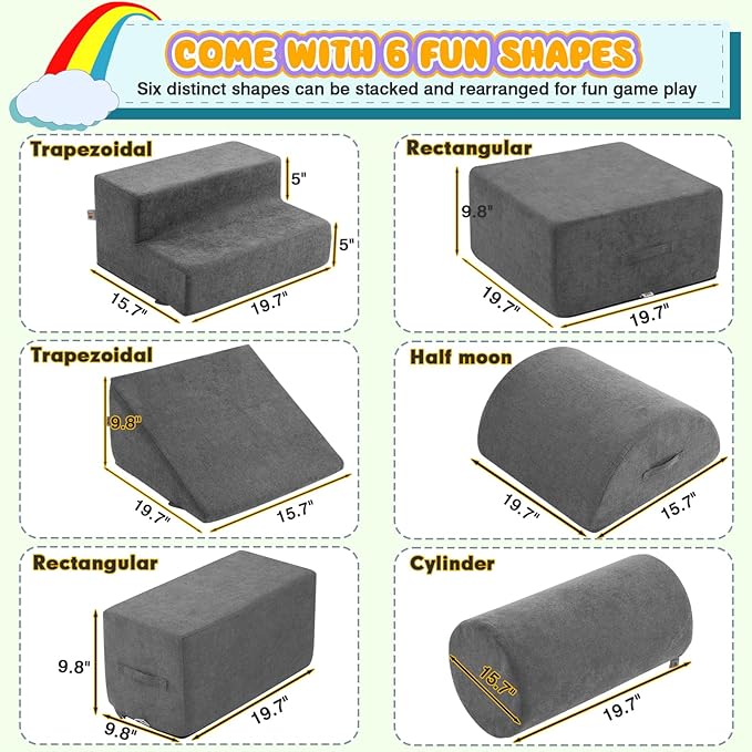 - 【EASY TO SETUP&COLLECT】: The foam climbing blocks set is easy to detach with smooth zippers, hidden zippers and handles to carry considerately designed for kids. machine washable covers, you can wash them anytime for brand-new look. Your babies will absolutely love this soft play equipment! Should you have any query please feel free to contact us , we will reply immediately.