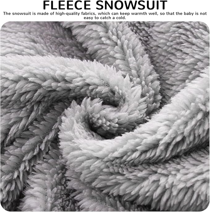 • ❤♥Design: Baby fleece snowsuit jacket warm one-piece jacket, full-cover zipper design to protect the baby from harm, one pull to the end, it is convenient for the baby to change diapers, the flip-up gloves can keep the baby warm and energetic at the same time, the bear ear one-piece cap makes the baby Avoid cold winds outdoors while increasing your baby's charm.