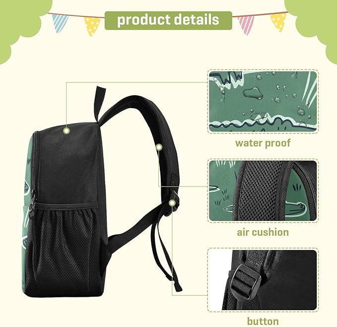 Cute Alligator Crocodile Toddler Backpack Waterproof Mini Backpack Boys/Girls Cute Small Backpack Kindergarten Pre School Bags (M