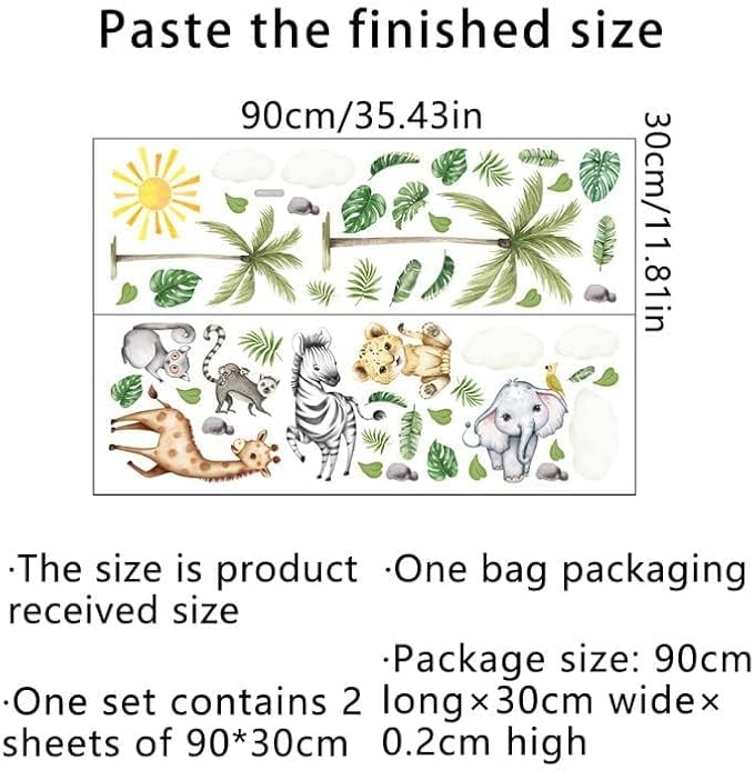 - Package Contents: You will receive a watercolor jungle animal wall stickers, containing giraffes, lions, elephants and other animal wall stickers, suitable for living room, bedroom, playroom, nursery, classroom, day care, kindergarten and other walls