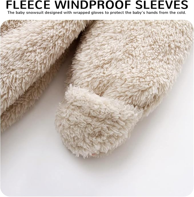 - ??Design: Baby fleece snowsuit jacket warm one-piece jacket, full-cover zipper design to protect the baby from harm, one pull to the end, it is convenient for the baby to change diapers, the flip-up gloves can keep the baby warm and energetic at the same time, the bear ear one-piece cap makes the baby Avoid cold winds outdoors while increasing your baby's charm.