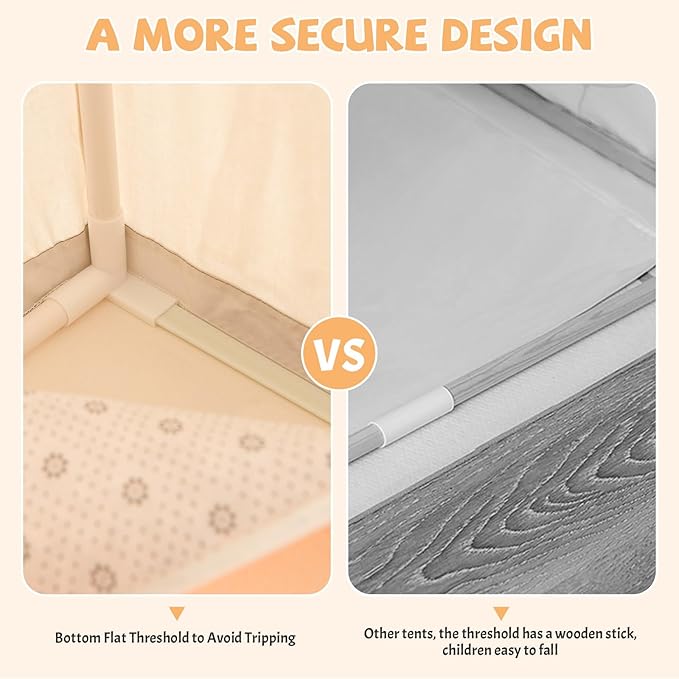 - ✨ANTI-TRIP DESIGN:Our children's tent is different from other tents in that the door is designed to be invisible threshold. Tent bottom close to the ground, children in and out of the tent will not trip or fall, very safe and reliable. Generally, the threshold of the tent door is a stick or a round pipe. When the children get in and out, they are likely to get wrestling.