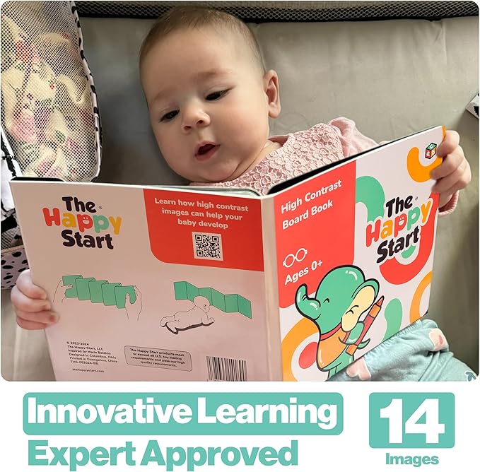 Happy Start Award-Winning High Contrast Board Book - Newborn Black & White Baby Cards, Easy to Clean, Hospital Approved, Stands on Its Own, Tummy Time Toy, Ages 0+ (English)