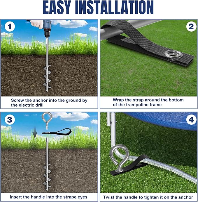 - Durable Performance: Unlike other stakes, these trampoline anchors resist deformation, corrosion, and rust, ensuring long-term, sustainable performance.