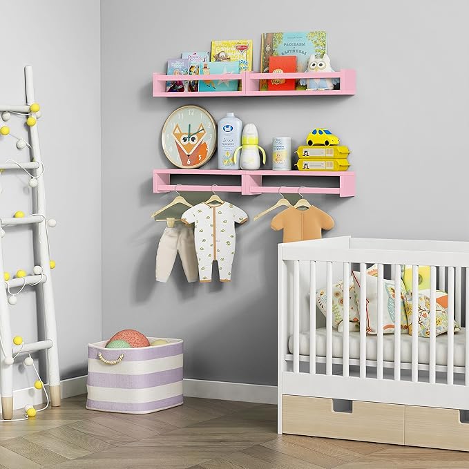 - [Great for Nursery and Kids Room] Mount these floating shelves on your nursery wall, Kids can stow books, toys, stuffed animals and games in wall shelving, where theyโll be off the floor and easy to reach.