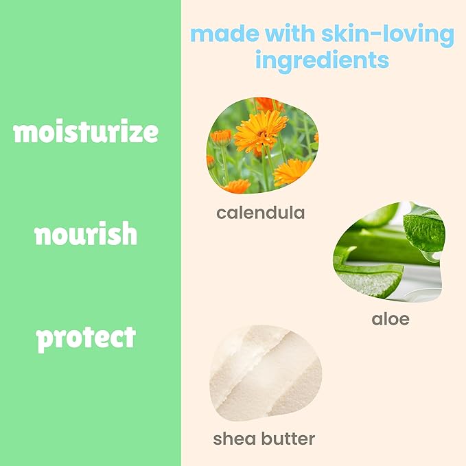 - Nourishing formula made with soothing calendula and aloe.