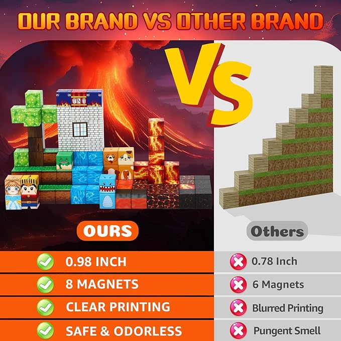 - Dinosaur Volcano Magnet World - Dinosaur volcano magnet set take our magnetic blocks on an adventure into the world of dinosaurs. Designed with a variety of uniquely patterned cubes covering different landscapes from forests to erupting volcanoes, perfect for creating epic dinosaur battles and imaginative stories. Imagine the roar of dinosaurs transporting you into an exciting world! Learn about the evolution of dinosaurs and embark on an adventure.