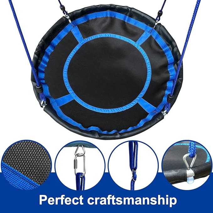 - Sturdy Saucer Swing: Composed of a strong galvanized chain and high-density textilene fabric cloth seat, it has strong UV resistance and will not fade for many years. The round swing seat with a diameter of 32 inches can allow 2-3 children to swing at the same time and enjoy a beautiful childhood