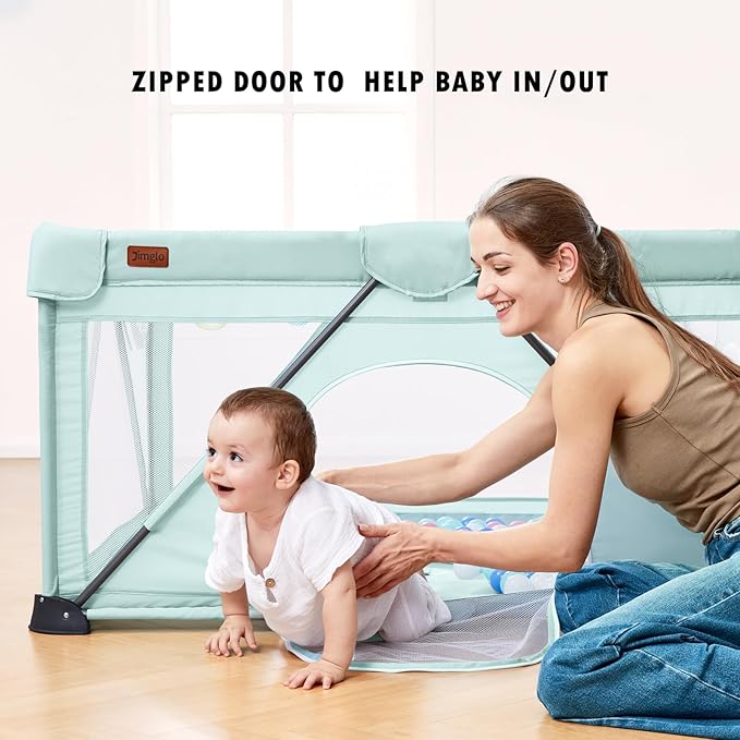 - ❤360° Breathable Mesh: The mesh makes it possible to keep track of your baby's movements. Playpen with zippered gate meets baby's need to enter and exit independently. It comes in soft neutrals and has a sleek design meant to fit in with your decor for years to come.