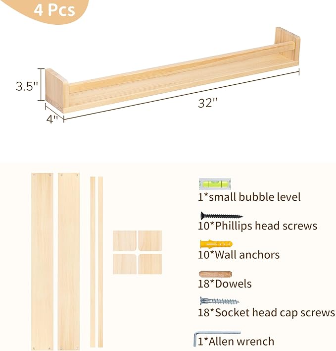 - Durable & High-Quality: Made of solid pine wood, these floating shelves are built to last. They'll provide a stylish and practical storage solution for years to come, making them an excellent addition to nursery decor and any room throughout your home