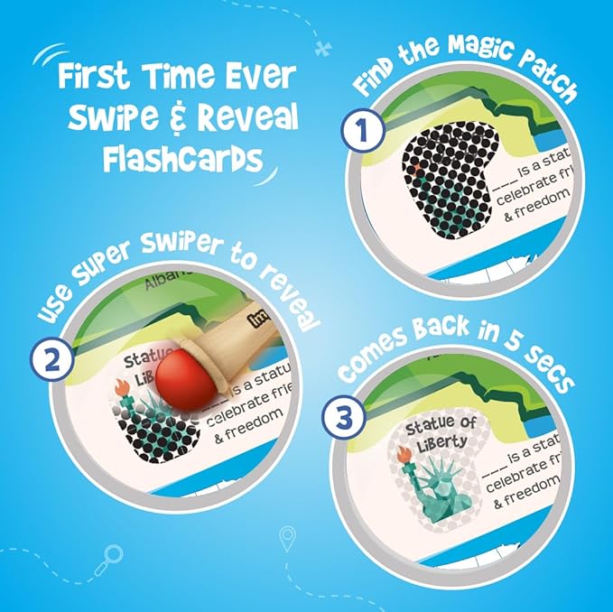 - EXPERIENCE THE ULTIMATE USA STATES DISCOVERY - Learn about the States of the USA, their Capitals, and intriguing Fun Facts, while immersing in interactive quizzes, revealing hidden facts with SWIPE & REVEAL, and uncovering magic patch surprises with this USA map puzzle and flash cards for an unforgettable journey into American history, geography, and culture, ultimately mastering 750 plus facts along the way.