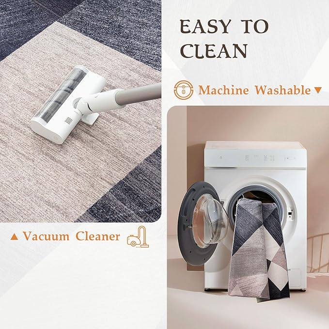 - 【Machine Washable Rugs】HOMFINE modern bedroom rug is machine washable, making it a more thorough and effortless way to remove stains and dust, which not only removes stains, dust, and odors more thoroughly but also saves you time and effort. Daily care is a breeze too, simply use a hoover. The HOMFINE washable area rug offers convenience and affordability for your busy lifestyle