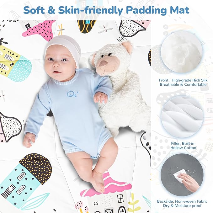 - 【Exclusive Foldable Design】: Li'l Pengyu baby play mat with exclusive foldable design, it's easy transforms into a handy bag for storing small toys. It's the perfect companion for camping and everyday play. Practicality meets convenience!