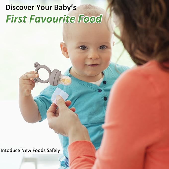 - [Safe Way to Introduce Solids to Baby] The JEXFUN Bear fresh fruit food feeder is the perfect way to introduce solids to babies. This innovative device features a silicone pouch with small holes that only allow small, easily digestible pieces of food to pass through, eliminating the risk of choking.