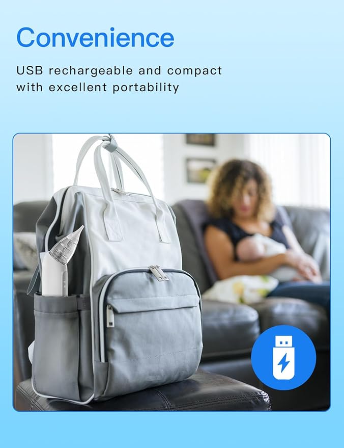 - Rechargeable and IPX4: The nasal aspirator supports USB charging and the IPX4 waterproof technology is designed to be splash-proof (not submersible), extending the life of the nasal aspirator.