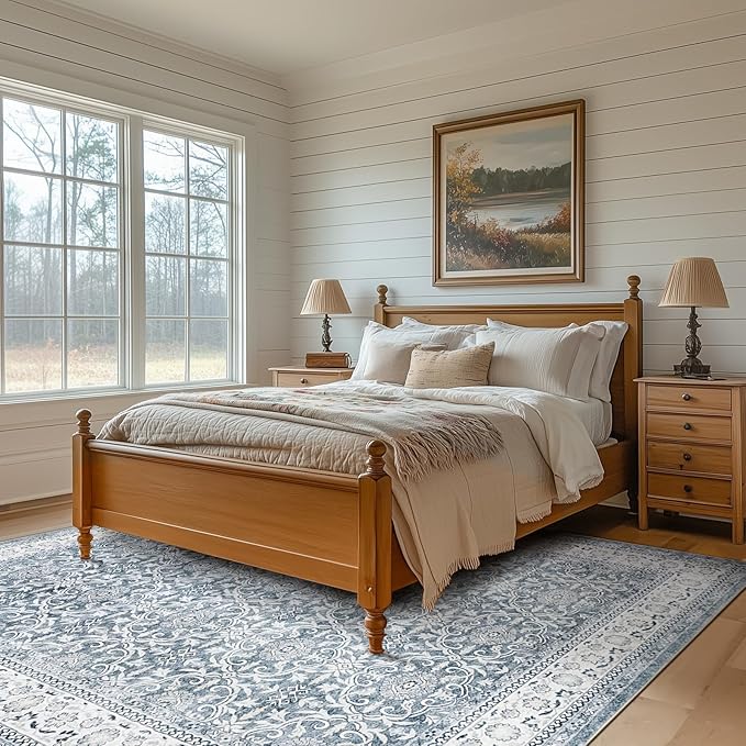 jinchan Floral 9x12 Area Rugs for Living Room - Machine Washable Vintage Distressed Boho Design Soft Throw Rug Large Carpet Low-Pile Thin Non-Slip for Bedroom Dining Room Nursery (9‘x12',Grey)