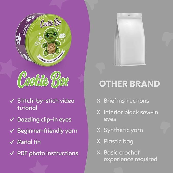 - ๐ Our Promise to You: The entire Cookie Box team is committed to making crochet truly beginner-friendly, frustration-free, and rewarding. Every kit is designed for the best learning experience, combining high-quality materials, clear guidance, and real support. Thank you for being part of the Cookie Box crochet community!