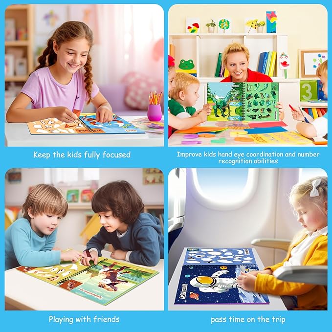 - Enchanting Gifts for Boys:The size of sticker book is compact,at 8.4*9.4 in,each book is travel-friendly, making it an invaluable toys for your kids on car rides,train, or airplane trips. Allows kids to stay away from electronic screens and immerse themselves in the joy of sticker activities. The kids stickers book must be the most exceptional gift for boys aged 4-8, whether you are looking for Birthday gift, Christmas gift or back-to school gifts for boys.