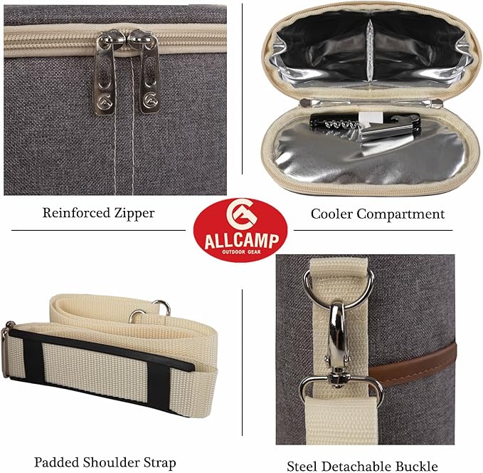 ALLCAMP OUTDOOR GEAR 2 Bottle Wine Tote Carrier - Insulated Portable Padded Canvas Wine Bag for Travel, BYOB Restaurant, Wine Tasting, Party, Great Christmas Day Gift for Wine Lover,Dark Gray