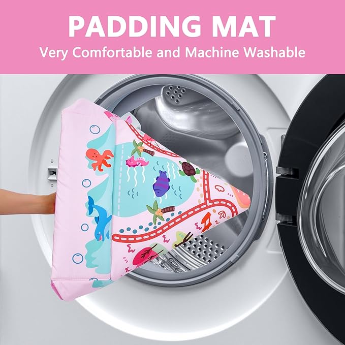 - [Safe and Easy to Clean]: The play mat is made of polyester and cotton and has been tested to be phthalate-free. Soft and safe materials ensure a delightful exploration for babies while protecting them from potential impacts. The non-slip bottom design adds an extra layer of safety. Cleaning is simple—stains can be wiped away directly, keeping the play area tidy and hygienic while saving parents valuable time and energy.