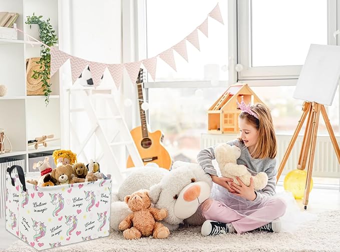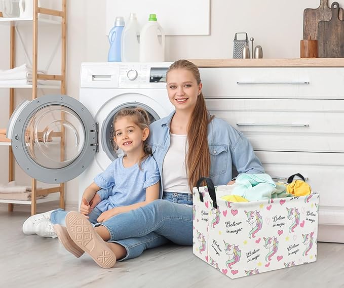 HIYAGON Rectangular Unicorn Basket Gift Baskets Empty Cute Storage Bin with Handles Nursery Room Decor(Unicorn)