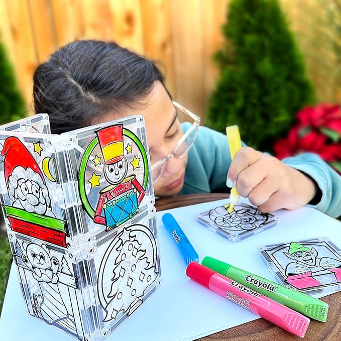 CreateOn Crayola PaintOn Holiday Magnetic Tiles, Magnetic Kids’ Building Toys, STEM Learning Travel Toys for Boys and Girls, 18-Piece Set