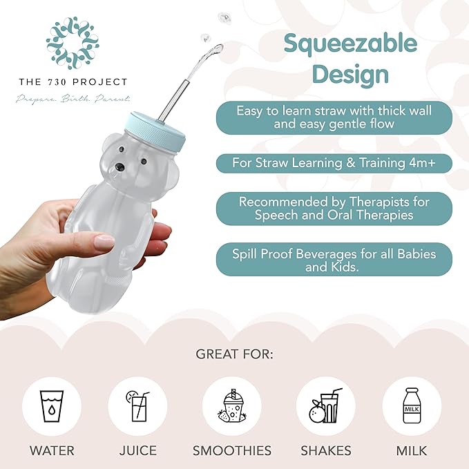 - Approved by professionals: Our bear sippy cup with gentle flow straws is ideal for straw learning for babies 4 months+, as well as for speech therapy use for children 18 months+. (*Consult your doctor or specialist for therapeutic applications.)