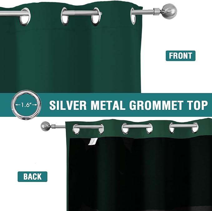 ChrisDowa 100% Blackout Curtains for Bedroom with Black Liner, 2 Thick Layers Total Blackout Thermal Insulated Grommet Small Window Curtains 2 Panels Set (Forest Green, 42 x 45 Inch)