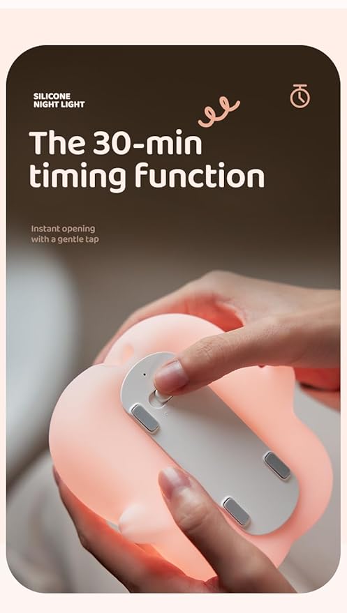 - [BPA-free] Pig Night Light is made of safe and non-toxic food-grade silicone. As a touch-controlled baby night light that comes into contact with the body every day, we use the highest grade food-grade silicone that is BPA-free. Soft silicone can be kneaded freely and springs back quickly. The silicone exterior is thickened to prevent easy breakage or damage. It can be your stress reliever instantly. It is a baby night light and a stress relief toy.