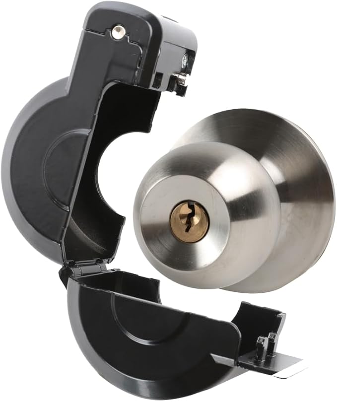 - HIGH QUALITY: The door knob lockout device is made of high-quality metal with powder coating for long time use. Not easy to be rusted outdoor. It is designed to cover and lock around the door knob to prevent the knob from turning or key open