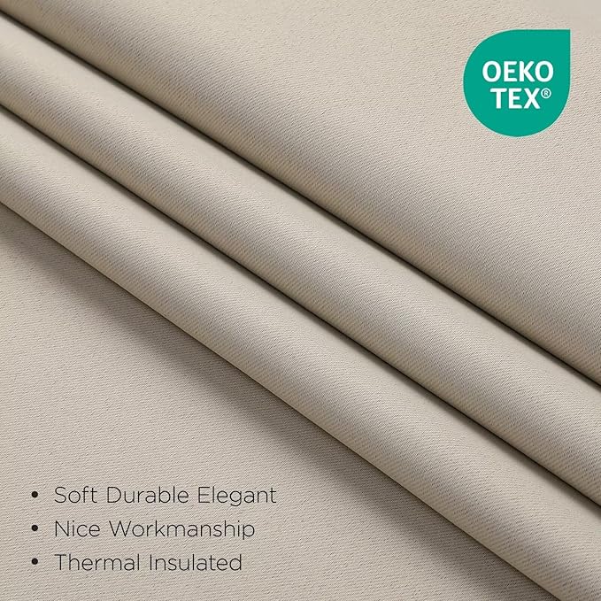 Joydeco Blackout Curtains 108 Inches Long, Thermal Insulated Black Out Curtains 2 Panels Set, Room Darkening Drapes for Living Room Window Rod Pocket Back Tab (W52 x L108 Inch, Light Beige)