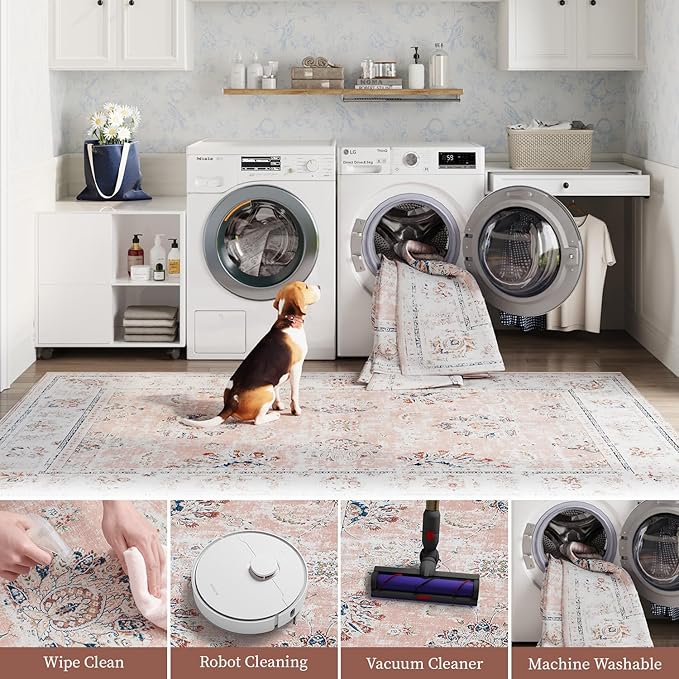 - Kid & Pet Friendly Comfort: The flat-woven, low-pile carpet invites carefree play, cozy naps, and everyday moments with little feet and furry paws—without trapping hair or dust. Its cheerful pattern makes a joyful backdrop for making memories together.