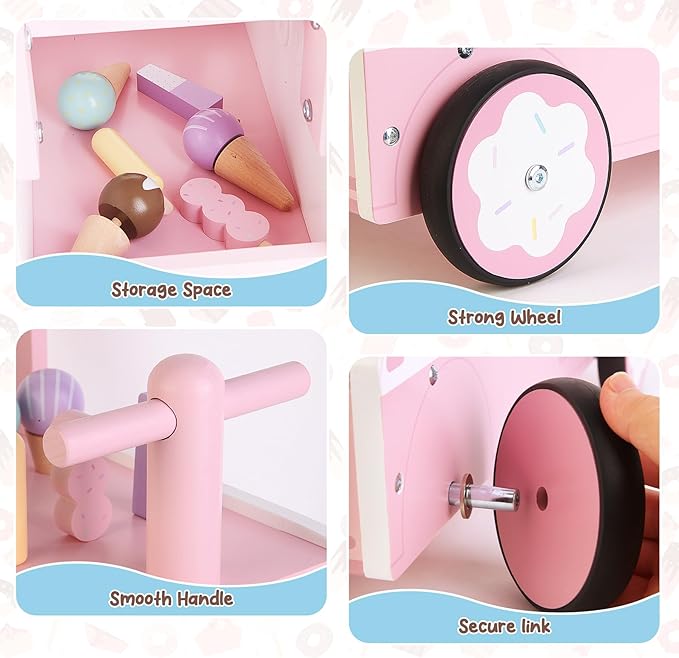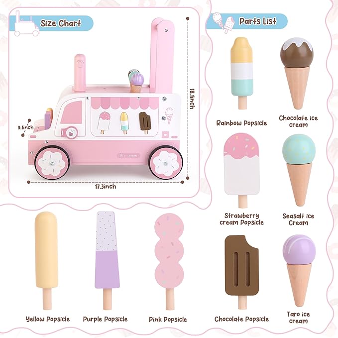 - 【BEST GIFT FOR KIDS】Whether your little one is sitting, squatting, standing or walking, they will love the Asweets Ice Cream push and pull walker and they will be happy to get it as a gift