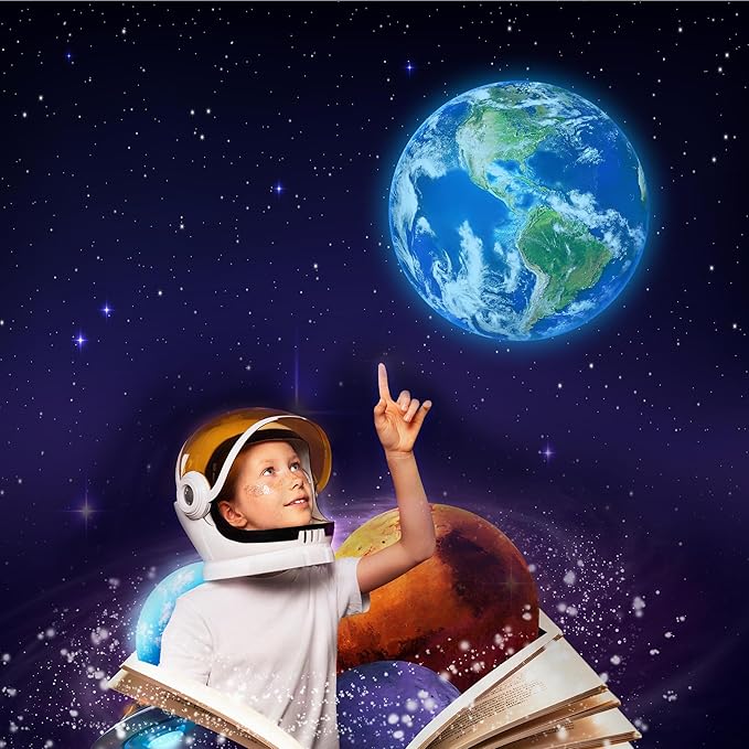 - Robmoda Glow in The Dark Planet - One piece of earth sticker made up of non-toxic, eco-friendly, waterproof, pressure resistant, shock resistant& durable fluorescent PVC. It comes in 23.5 cm (9.25”).